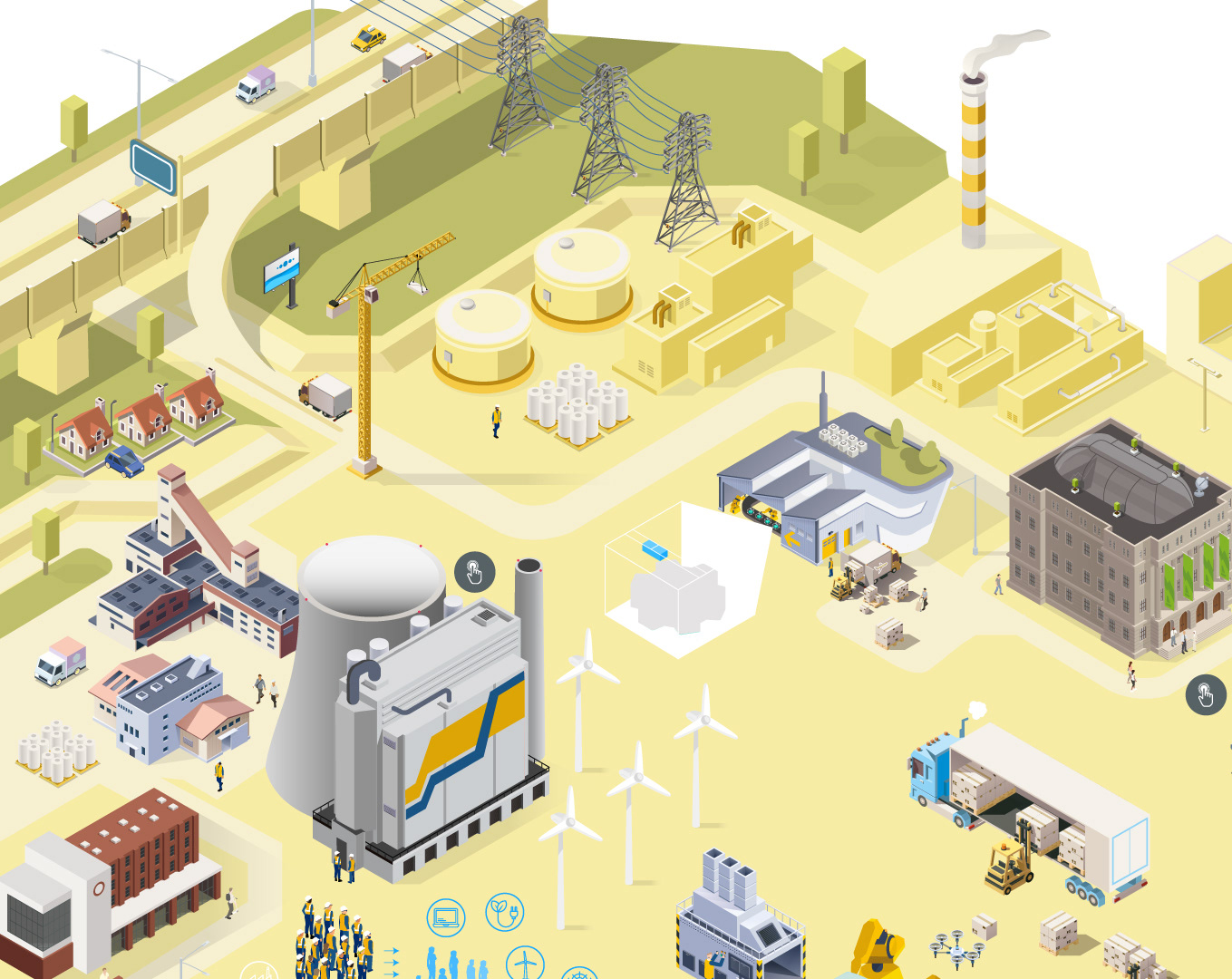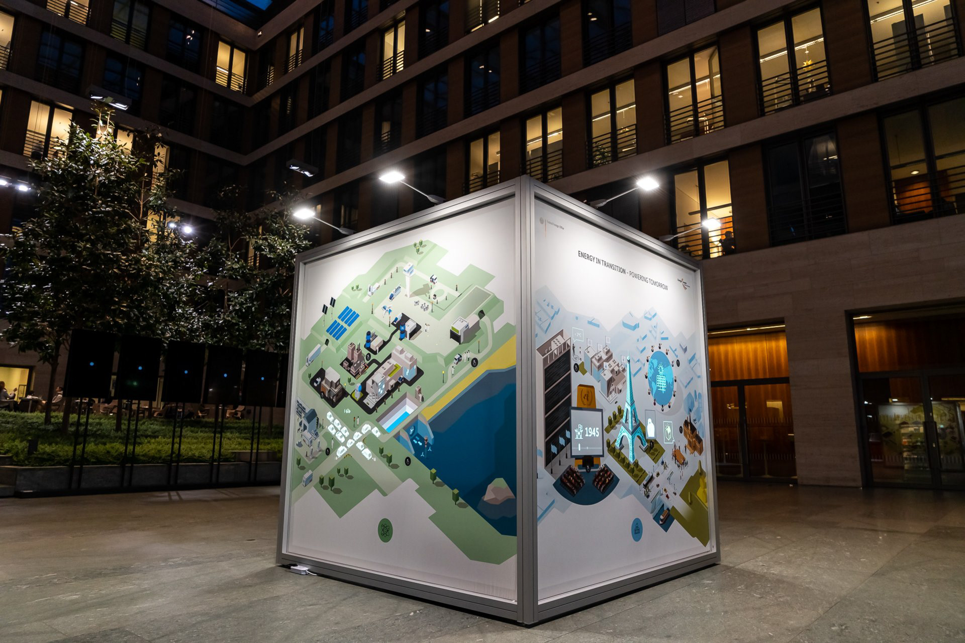Illustrations for a travelling exhibition organised by the German Federal Foreign Office. The exhibits are meant to give an insight into the global dialogue on the energy transition as seen by governments, society, the private sector and the scientific and academic community. The illustrations come to life via interactive elements and back projections.
