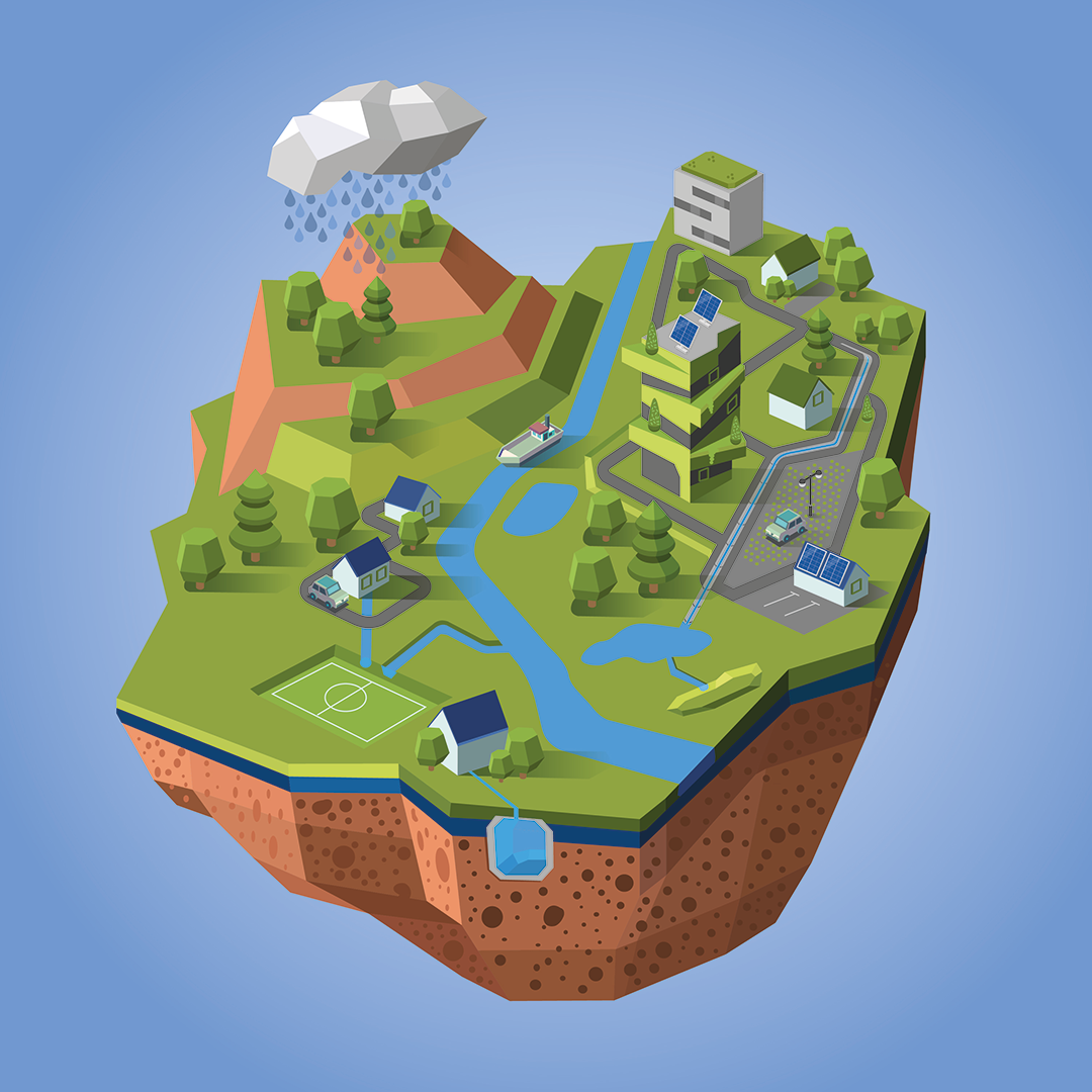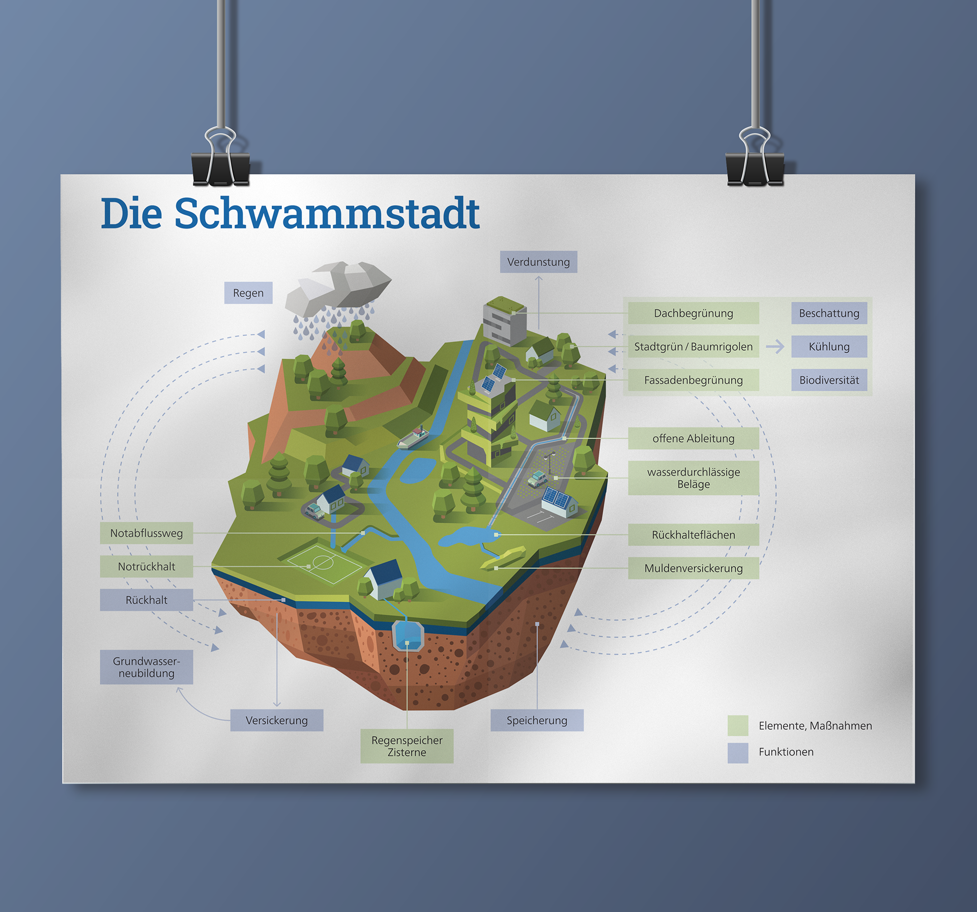 Infographik zur Visualisierung des Themas Schwammstadt für die Regenagentur