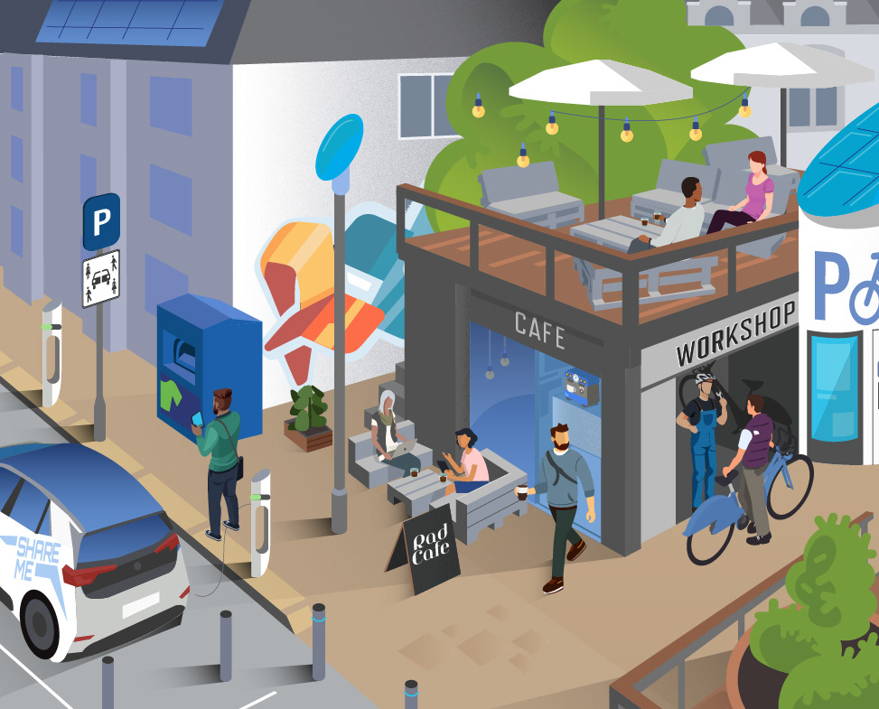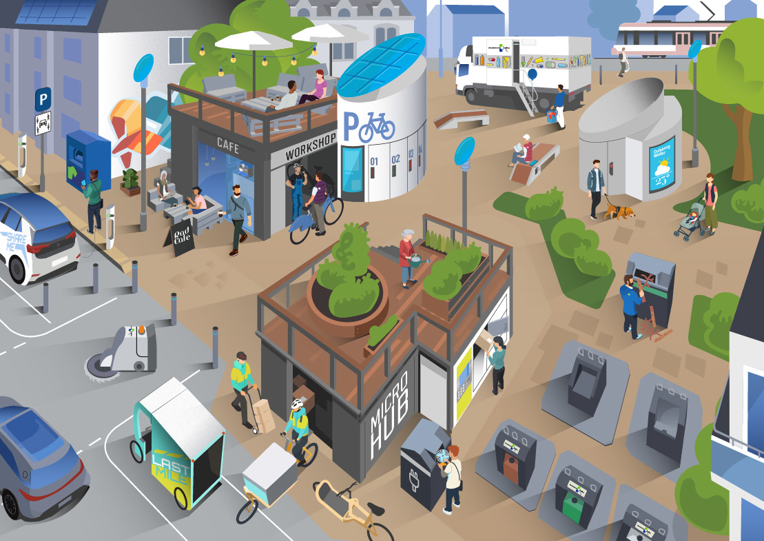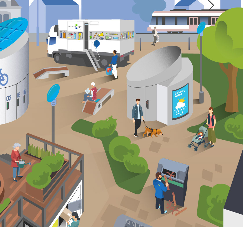 Promotional illustration about "Urban Hubs" for Wirtschaftsbetriebe Duisburg